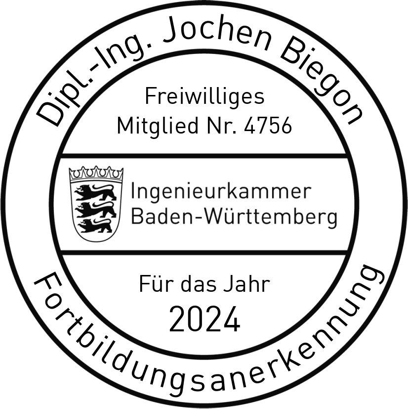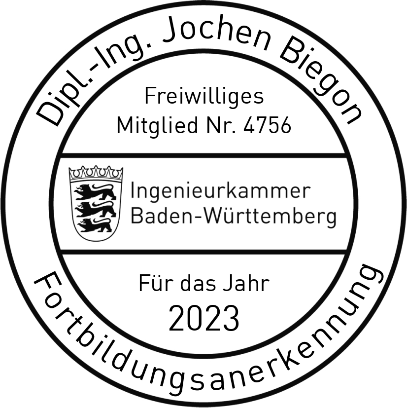 - Mitglied in der Ingenieurkammer Baden Württemberg